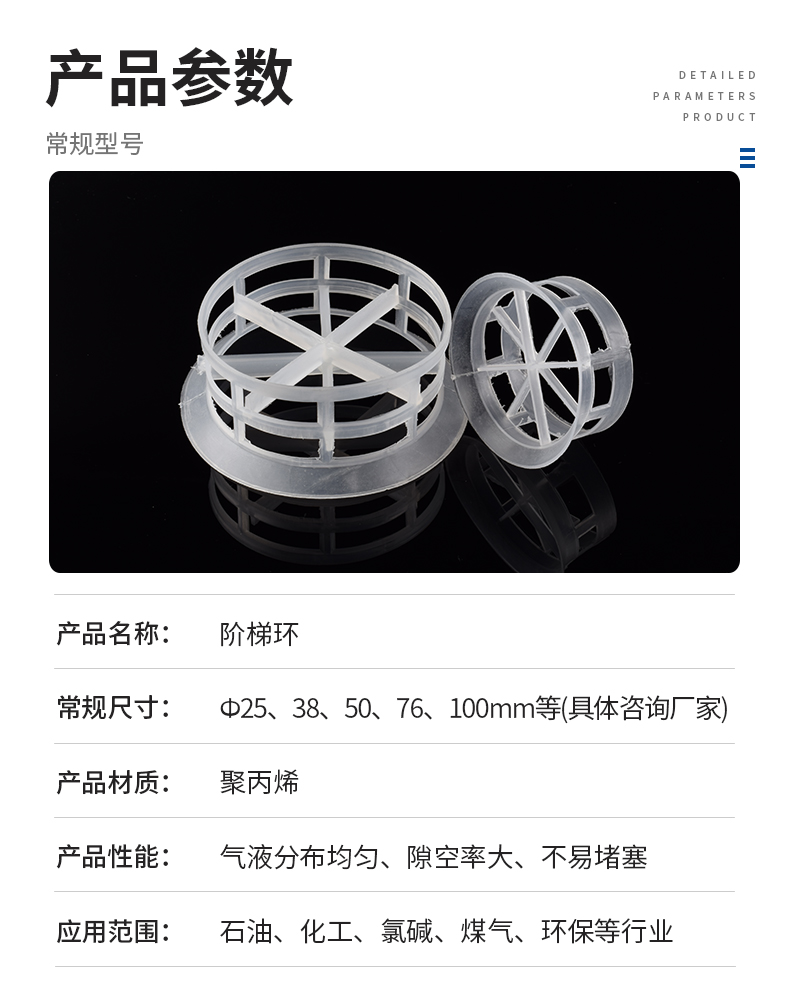 由于階梯環填料的側端增加了翻邊,不但可以增加填料環的機械強度,而且由于破壞了填料結構的對稱性,因而增加了填料投放時的定向幾率。又由于翻邊的影響,使得填料在堆積時填料環隙之間的接觸由此線性接觸為主變為以點接觸為主。這樣,不但增加了填料顆粒之間的空隙,減少了氣體穿過填料層的阻力,而且這些接觸點還可以為液體沿填料表面流動的匯聚分散點,從而促進了液膜的表面更新,有利于填料傳質效率的提高。